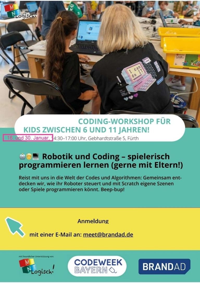 Am 16. und 30. Januar fand in den Räumen der Fa. BRANDAD ein Coding-Workshop für Kinder ind er Altersklasse 6 - 11 Jahre statt.